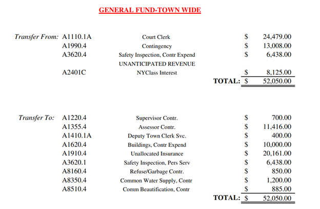 Supervisor Thater offered a motion, seconded by Councilperson Davis